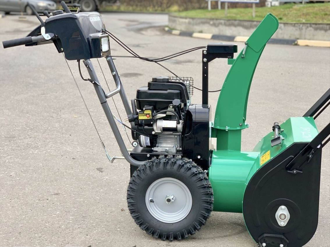 Электростартер, подогрев ручек, фары и поворотный желоб выброса — удобство и контроль в любую погоду.