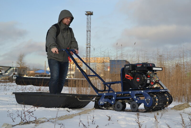 6.5 л.с. До 30 км/ч Гусеница 380 мм Масса 95 кг Грузоподъемность 250 кг