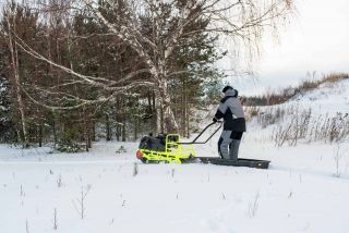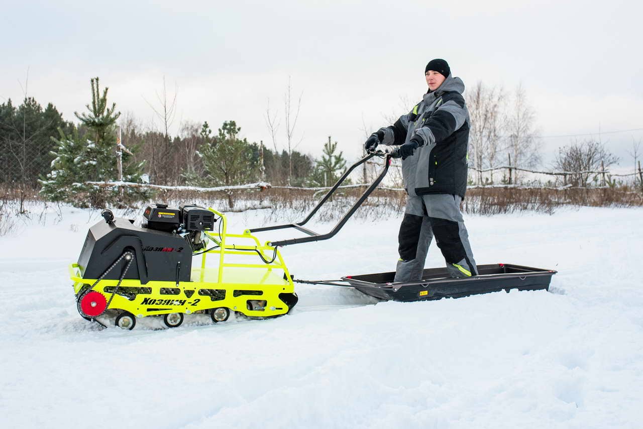 Мотобуксировщик для перевозки грузов и перемещения людей в условиях бездорожья. Идеален для охоты, рыбалки и сельского хозяйства.