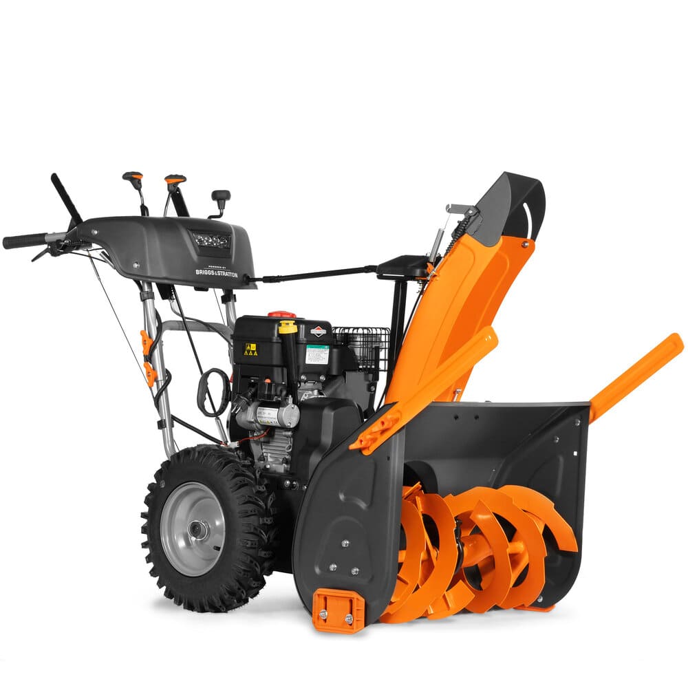 Надёжная машина для расчистки дорог, тротуаров и приусадебных территорий от свежего и наметённого снега. Воздушное охлаждение, объём 250 см³ и 8 л.с. обеспечивают стабильную тягу на укатанном и рыхлом снегу. Ручной стартер и электростартер для уверенного пуска в мороз. Максимальные обороты — до 3600 об/мин. Прочный режущий край эффективно разбивает наст и плотные снежные валы. Колёса с глубоким протектором сохраняют управляемость на укатанном и обледеневшем покрытии. Точная ориентация струи и дальность выброса до ~13 м уменьшают необходимость повторной проходки. Шесть передач вперёд и две назад — подбирайте темп под тип снега и рельеф участка. Освещение рабочей зоны и тёплые рукоятки повышают комфорт при низких температурах. Все рычаги на общей платформе — доступ к основным функциям без лишних движений. DAEWOO DAST 227 создан для интенсивной зимней эксплуатации на ровных твёрдых покрытиях и приусадебных территориях. Конструкция сочетает тягу и устойчивость, позволяя работать как со свежим, так и со слежавшимся снегом. Бензиновый двигатель Briggs & Stratton (8 л.с., 250 см³) с воздушным охлаждением развивает до 3600 об/мин. Два варианта пуска — ручной и электрический — упрощают запуск в холодную погоду. Поворотный желоб на 180° и дальность выброса до ~13 м ускоряют очистку больших площадей. Зубчатый металлический шнек эффективно дробит наст и снежные заносы. Ходовая с колёсами глубокого профиля сохраняет сцепление со скользкими поверхностями. Трансмиссия с 8 скоростями (6 вперёд / 2 назад) помогает подобрать оптимальный режим под плотность и высоту снежного покрова. Для работы в сумерках и при минусовых температурах предусмотрены LED-фара и подогрев рукояток. Эргономичная панель управления сокращает время на перенастройку и повышает продуктивность при длительных сменах. Снегоуборочная машина, руководство пользователя и базовый набор инструмента (по спецификации производителя). Стандартная гарантия 1 год согласно условиям производителя. Выполняйте обкатку, следите за состоянием шнека и натяжением приводов, соблюдайте регламент ТО. Уточняйте технические детали, совместимость аксессуаров и рекомендации по обслуживанию.Самоходный снегоуборщик DAEWOO DAST 227