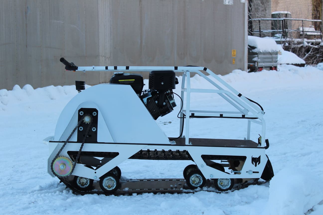 Всесезонная российская техника для перевозки людей и грузов по целине и бездорожью: надёжная трансмиссия, широкая гусеница и продуманная модульность. Двигатель 420 см³ (13 л.с.) обеспечивает стабильную тягу, скорость до ~40 км/ч и уверенную буксировку. Новый двухопорный узел прост в обслуживании и совместим с реверс-редуктором. Повышенная надёжность под нагрузкой. Смягчает удары и вибрации на неровностях. Для других сезонов — установка подпружиненных склизов и пневмоколёс. Ширина 500 мм с металлическими вставками — прочное сцепление, износостойкость и проходимость на рыхлых покрытиях. Компактные габариты 125×63×80 см и масса ~115 кг помогают уверенно проходить узкие и сложные участки. Увеличенный багажный отсек и штатные крепления для установки модулей и аксессуаров под задачи.