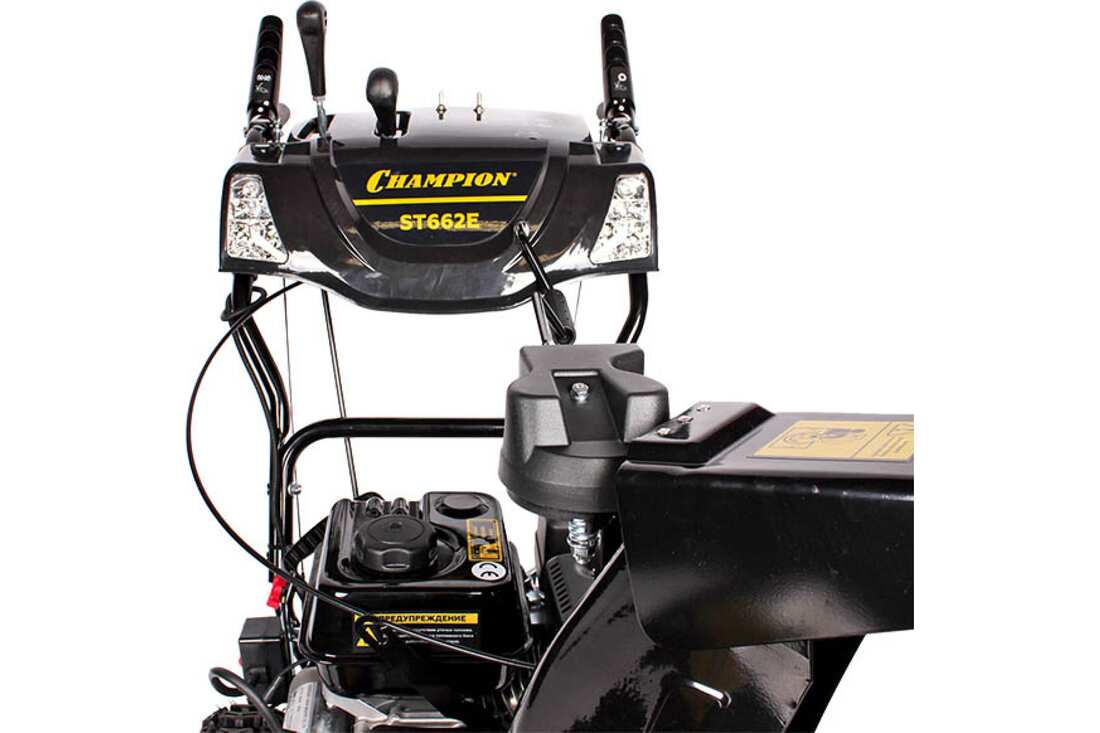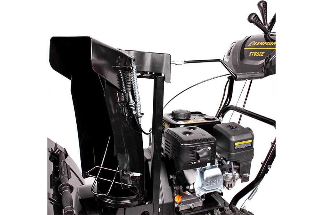 CHAMPION ST662E — самоходный снегоуборщик для бытового применения на твёрдых покрытиях: дорожках, подъездных дорожках, тротуарах. Компоновка с 4-тактным OHV-двигателем и подключаемым электростартером 220 В упрощает пуск и обеспечивает стабильную тягу в мороз.