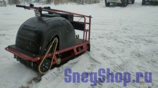 Силовая установка 270 см³ (9 л.с.) позволяет разгоняться до ~35 км/ч и уверенно перемещать полезную массу: до 40 кг на борту и дополнительно до 150 кг в санях.