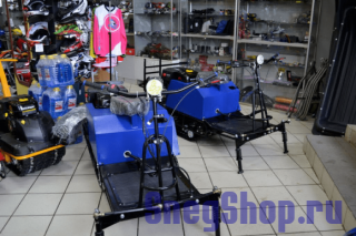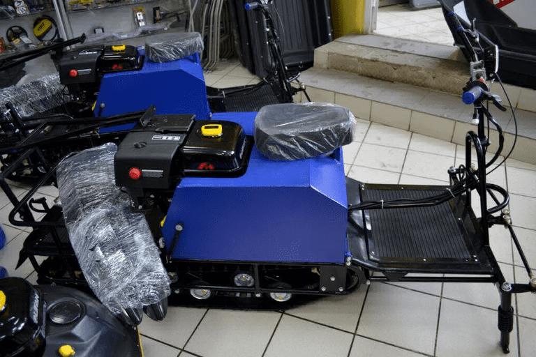 В базовой конфигурации управление — рогами, водитель следует в санях. Дополнительно доступны лыжный и колесный модули, а также модуль «толкач». Для удобства разворотов и парковки предусмотрена коробка реверса. Габариты 230×50×90 см и снаряжённая масса около 130 кг делают технику мобильной и неприхотливой.