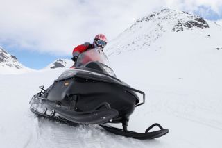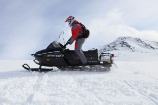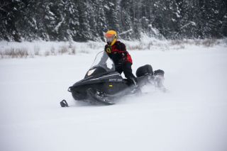 Гусеница Composit шириной 500 мм обеспечивает уверенное сцепление, а высокая прозрачная ветровая защита снижает обдув. Высокий руль упрощает маневрирование стоя, под седеньем расположен бокс для инструмента и мелочей.