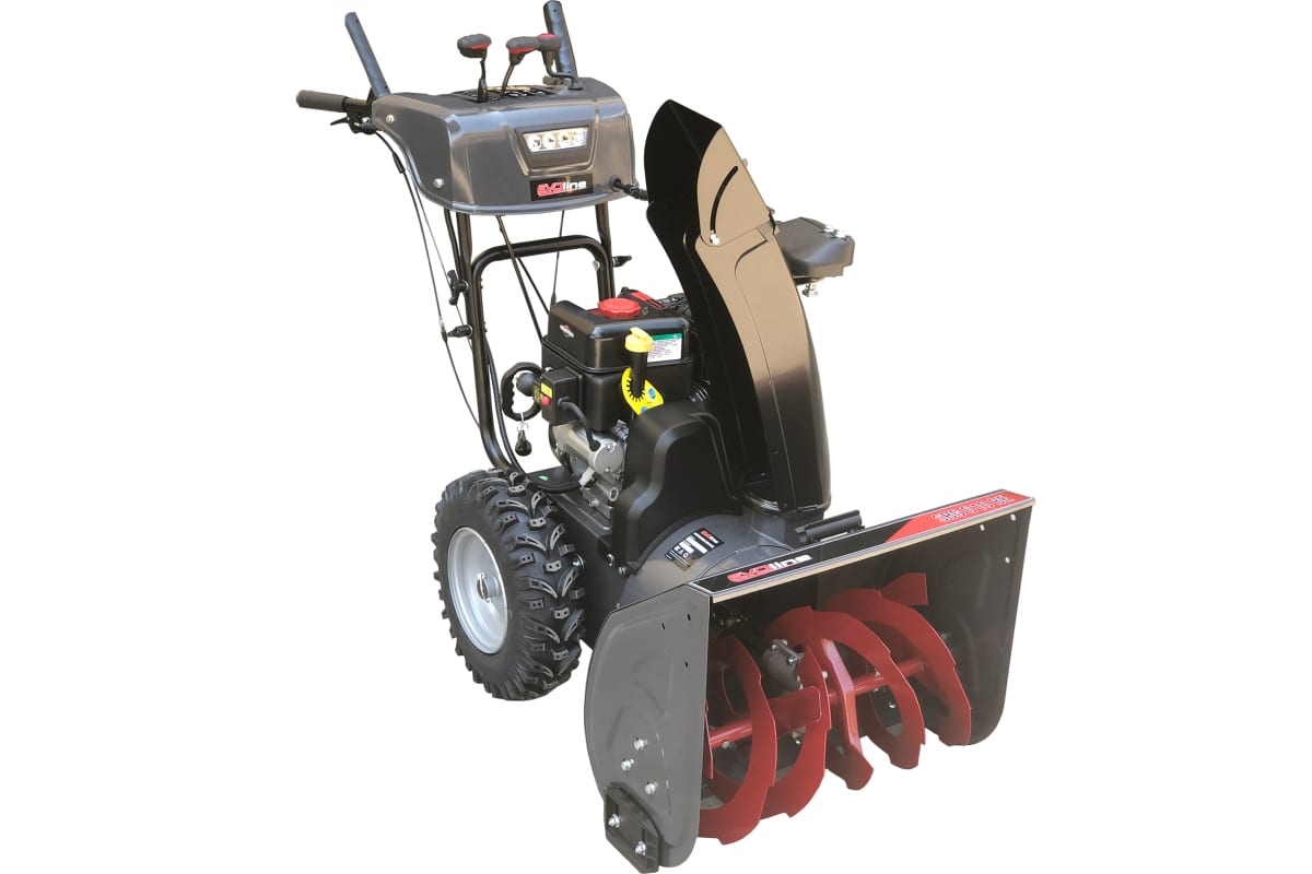 Бензиновый двигатель ZONGSHEN SN 210 E (208 см³, ~7 л.с.) с воздушным охлаждением рассчитан на продолжительные циклы работы. Запуск возможен как электростартером, так и вручную — удобно при отрицательных температурах. Трансмиссия с фрикционным диском предлагает 6 передач вперёд и 2 назад для точного подбора скорости под тип покрытия и глубину сугроба.