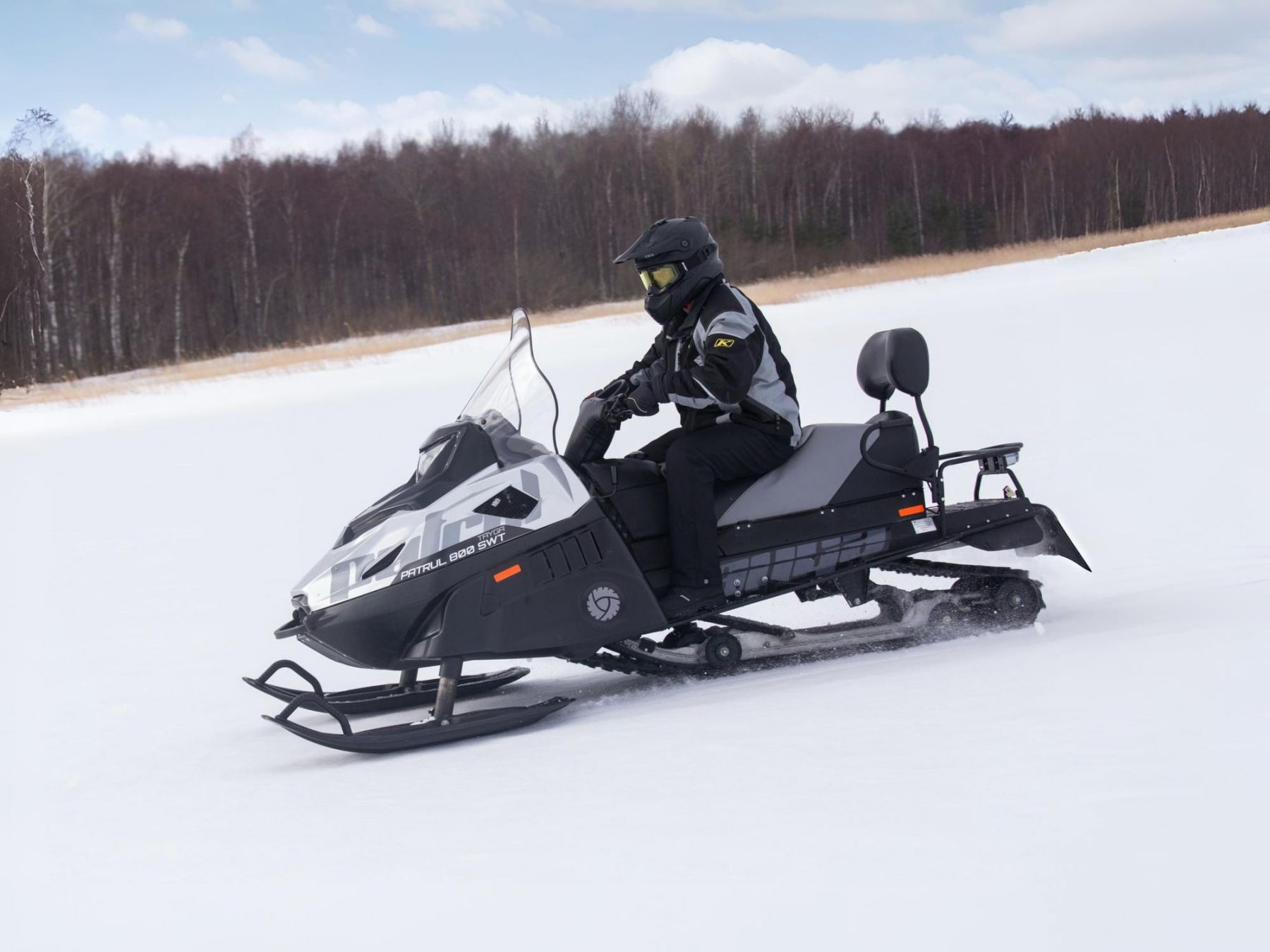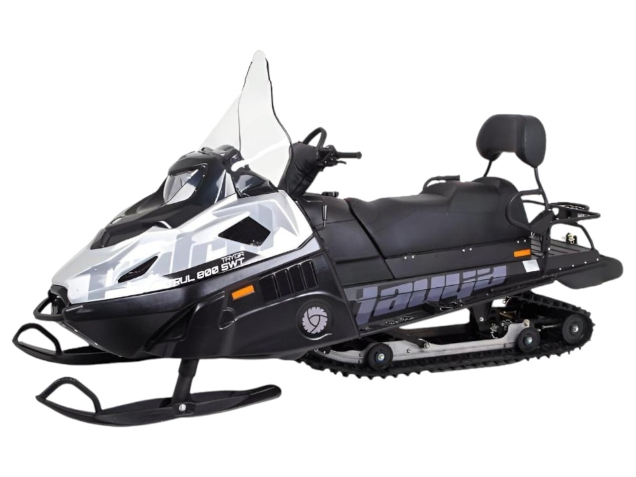 Надёжный утилитарный снегоход для дальних маршрутов и хозяйственных задач с акцентом на комфорт и проходимость. V‑образный четырёхтактный двигатель 800 см³ с инжекторной системой впрыска обеспечивает тягу на целине и стабильный расход. Радиатор в передней части и в тоннеле поддерживают рабочую температуру при нагрузке и на малых ходах. Новая задняя подвеска с ходом до 385 мм и регулировкой преднатяга позволяет адаптировать снегоход под покрытие и груз. Повышенная рулевая стойка, двухуровневое сиденье со съёмной спинкой и обогревом пассажирских рукояток для длительных поездок. Штатный подогрев охлаждающей жидкости помогает запуску двигателя при экстремально низких температурах. Аккумулятор 45 А·ч, гидравлический тормоз, розетка 12V, фаркоп, приборная панель Koso, новые органы управления. Patrul 800 SWT XE Sport создан как «вездеход» для зимы: уверенно перевозит груз, идёт по целине и сохраняет комфорт на длинных перегонах. Концепция модели — сочетать практичность утилитарной техники и удобство туристического снегохода. Двигатель объёмом 800 см³ (ориентировочно 60 л.с.; в комплектации XE Sport возможна настройка до ~70 л.с.*) работает в паре с инжекторной системой подачи топлива. Двухконтурное жидкостное охлаждение с радиаторами спереди и в тоннеле поддерживает стабильный тепловой режим. Топливный бак на 55 литров рассчитан на продолжительные марш-броски. Конструкция задней подвески переработана: увеличенный ход до 385 мм и регулировка преднатяга пружины позволяют быстро подстраивать поведение под вес экипировки, пассажира или саней. Эргономика пересмотрена — выше рулевая стойка, удобная посадка водителя, двухуровневое сиденье со спинкой и тёплыми рукоятками для пассажира. Для эксплуатации в суровом климате предусмотрен подогрев охлаждающей жидкости, что облегчает запуск в сильный мороз. Из дополнительного оснащения — усиленная электрика, гидравлический тормоз, розетка 12V, фаркоп и информативная приборная панель Koso. *Фактическая мощность и набор опций зависят от конкретной конфигурации. Алюминиевая защита толщиной 3 мм предохраняет ключевые узлы от механических повреждений. Стальные трубы с порошковым покрытием повышают стойкость к коррозии и защищают корпус при контактах с препятствиями. Просторный багажный отсек для инструмента и снаряжения. Защищают передние стойки от налипания снега и абразивного износа. Устойчивость на рыхлом снегу и уменьшение «зарывания» на малых скоростях. Возможна версия с увеличенной мощностью до ~70 л.с.* Модель прошла подтверждение соответствия требованиям безопасности ЕС (CE Certificate of Conformity). Рекомендуется обкатка, контроль натяжения гусеницы и плановое ТО для сохранения ресурса узлов. Уточняйте технические детали и совместимость аксессуаров у специалиста.RM TAYGA PATRUL 800 SWT XE SPORT
