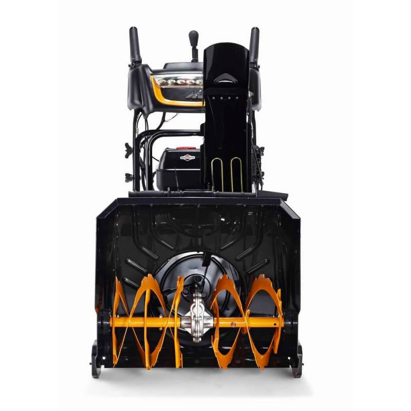 Поворот желоба на 180° и панель с органами управления упрощают настройку направления выброса и режима работы.