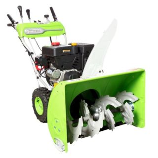 Особенностью этой модели является ручной стартер и возможность регулировки зазора ковша с помощью металлических башмаков. Благодаря высокой мощности и дальности выброса снега до 15 метров, снегоуборщик эффективен в самых различных условиях.