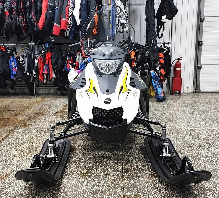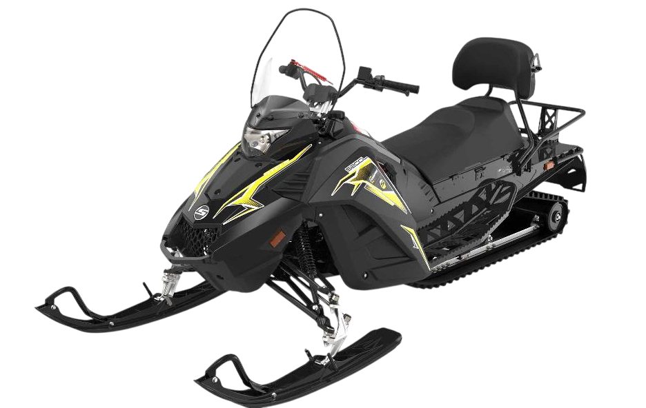 Двигатель 200 см³ развивает около 12 л.с., обеспечивая динамичный разгон и устойчивую тягу на укатанном снежном покрытии.