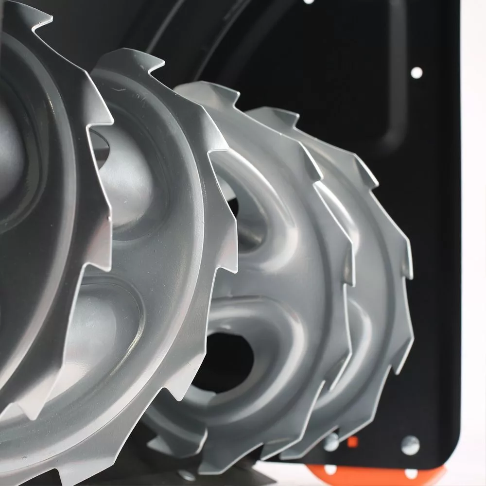 С мощным бензиновым двигателем 11 л.с. и металлическим зубчатым шнеком, он легко справляется с различными типами снега, включая обледеневший.