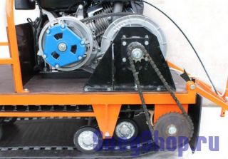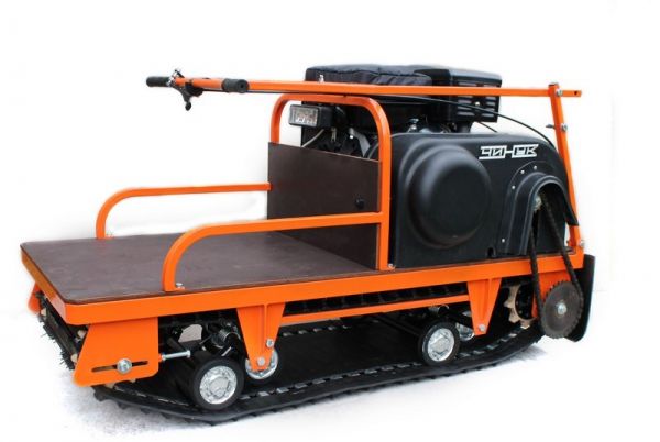 11 л.с. До 20 км/ч Гусеница 500 мм Масса ~100 кг Габариты 240×110×110 см Груз до 50 кг (+120 сани)