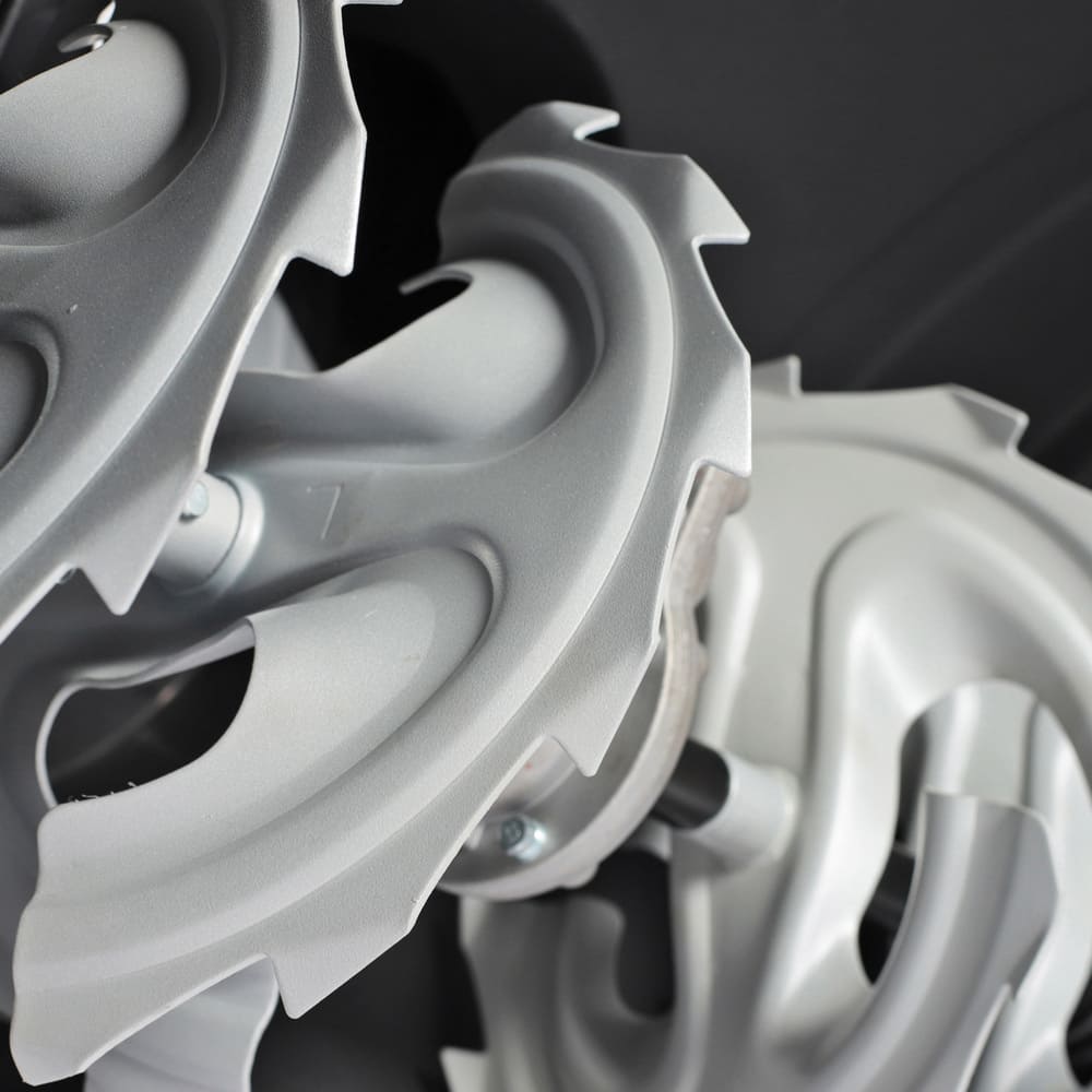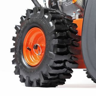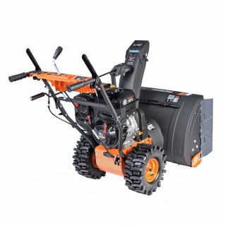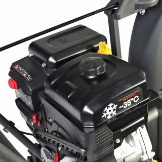 Оснащён 11-сильным бензиновым двигателем объёмом 302 куб. см, который выдерживает морозы до -35°C. Эта модель с двухступенчатой системой с шнеком из бронзы и металлическим зубчатым шнеком обеспечивает отличную работу даже с обледеневшим снегом.