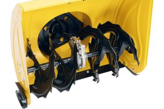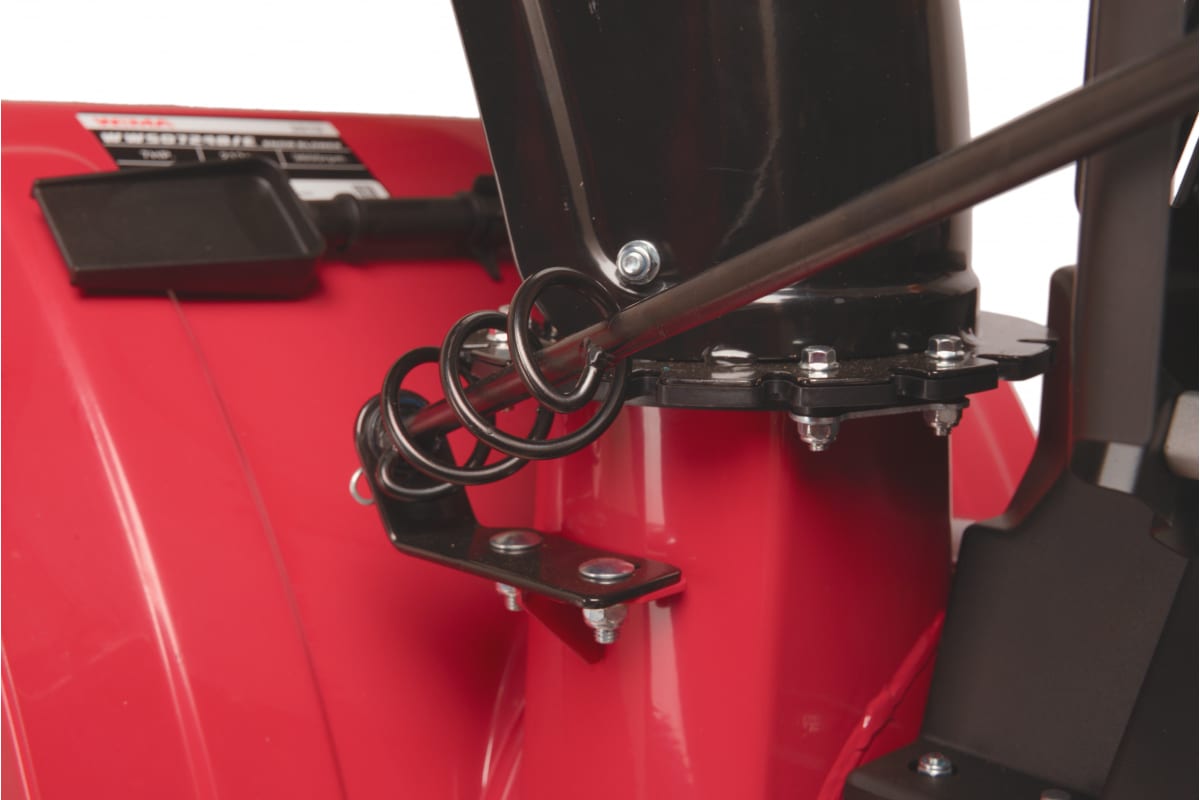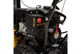 Дальность выброса снега на этой модели составляет до 15 метров, что позволяет быстро очистить большие площади.