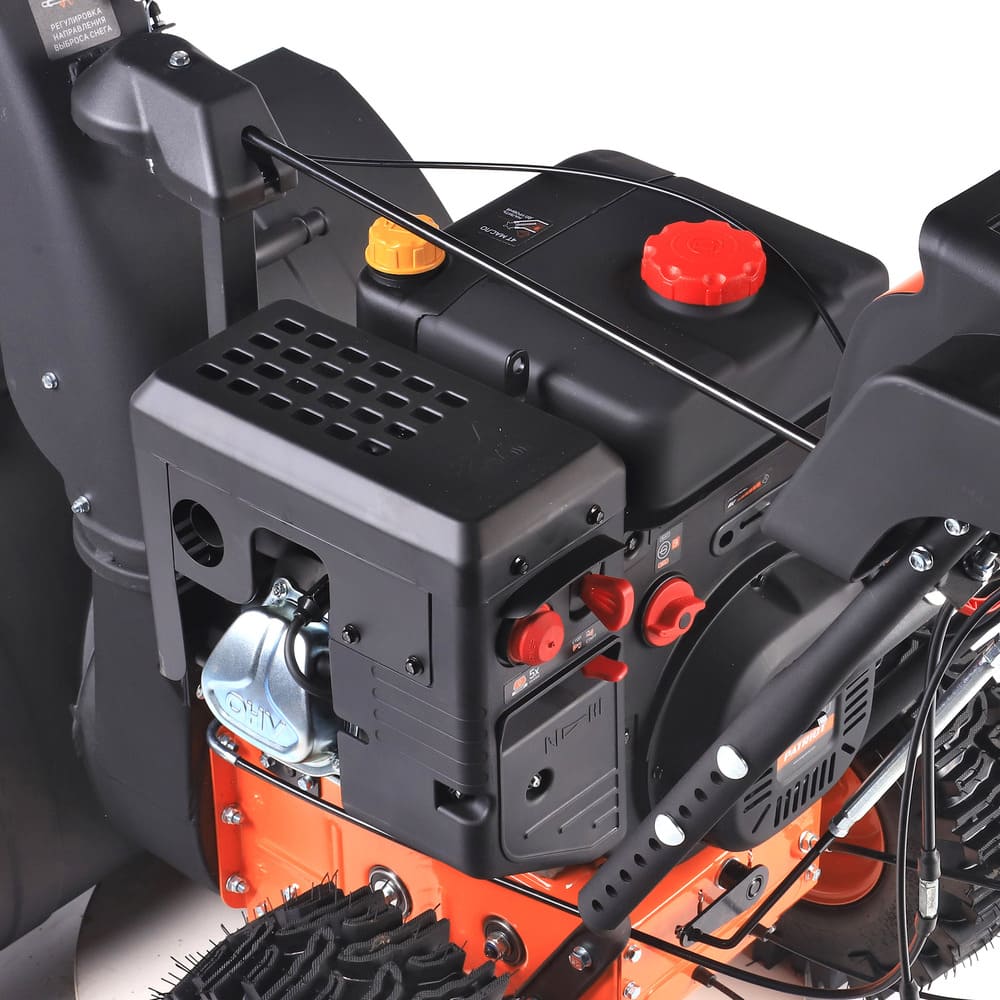 13-сильный бензиновый мотор объёмом 375 см³ устойчиво работает в мороз и обеспечивает уверенную подачу тяги под нагрузкой.