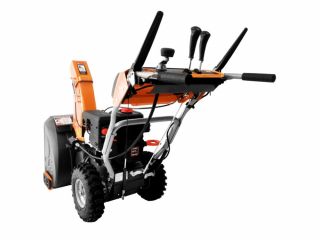 Ширина ковша составляет 61 см, высота забора — до 51 см. Металлический шнек и крыльчатка эффективно подают и выбрасывают снег на расстояние до ~11 м через регулируемый стальной желоб.