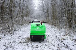Обладает мощностью 9 л.с. и позволяет буксировать грузы до 400 кг. Гусеница шириной 500 мм с металлическими вставками обеспечивает отличное сцепление с поверхностью.