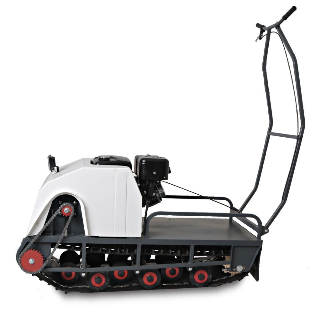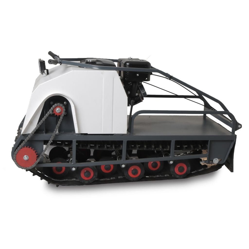 В вариаторной системе мотобуксировщика используется передача с изменяемым передаточным числом, что позволяет эффективно использовать мощность двигателя в любых условиях. Удлиненная гусеница и катковая подвеска значительно улучшают проходимость на сложных участках, таких как лед и снег.