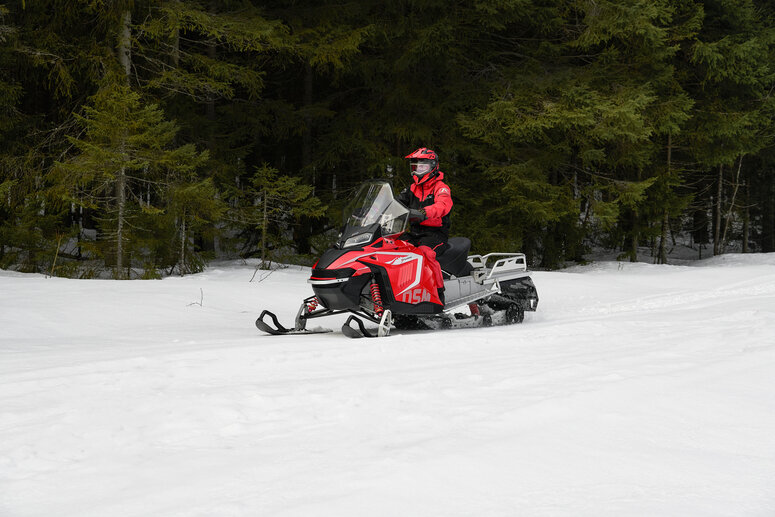 Универсальный двухместный снегоход для сложных зимних маршрутов: манёвренный ход, энергоёмкая подвеска и лёгкая алюминиевая рама. Литровый двигатель развивает 85 л.с. и обеспечивает уверенную тягу на глубоком снегу и подъёмах. Оптимальные параметры гусеницы 444×4140×41 мм дают сочетание проходимости и устойчивости на курсе. Регулируемая система сжатия–отбоя помогает сохранять контроль на разбитом насте и при скоростных перегонах. Специальный профиль уверенно держит траекторию на укатанной трассе и в целине. Лёгкие сплавы и усилители жёсткости — цельный штампованный тоннель и трубчатые подножки — снижают массу и повышают ресурс. В конструкции применяются компоненты ведущих производителей: DELPHI, CVTech, DEFA и др.