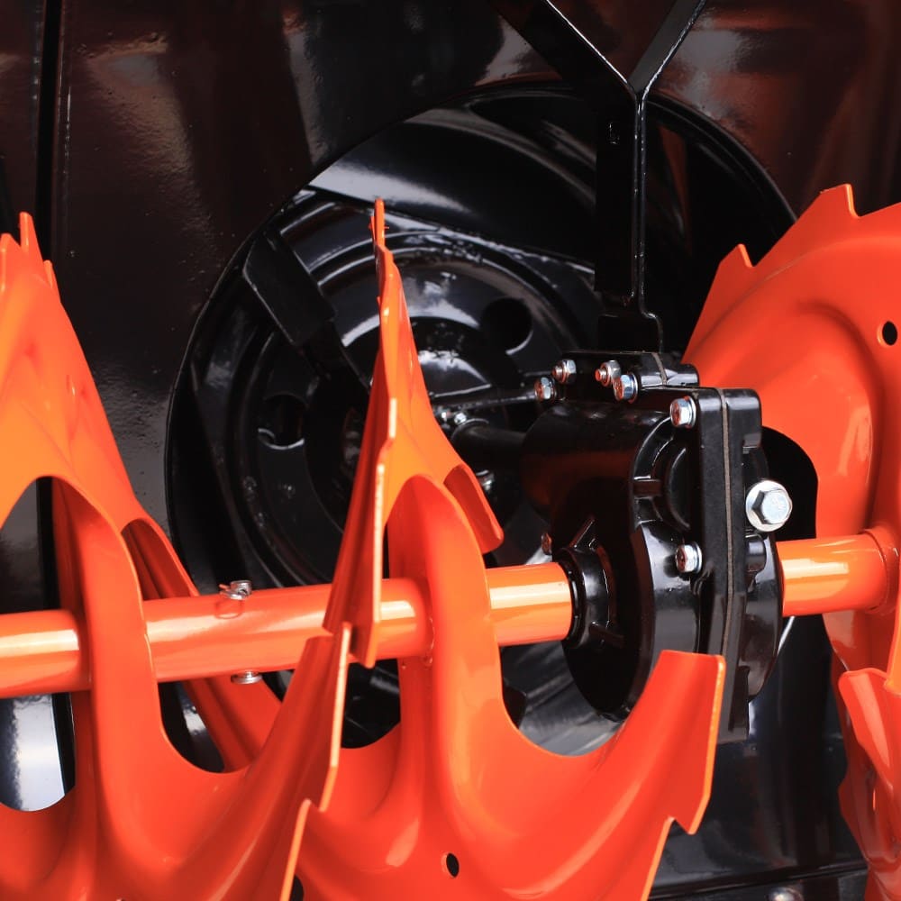 Шестерня редуктора выполнена из бронзы, что в десятки раз увеличивает ресурс снегоуборщика.