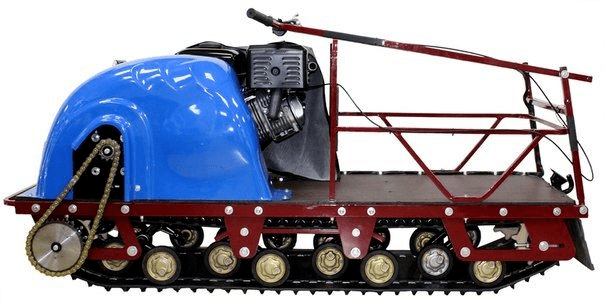 Катковая подвеска и подпружиненные склизы смягчают вибрации, повышают устойчивость и комфорт. Гусеница шириной 500 мм выполнена из износостойкого материала с металлическими элементами для уверенного сцепления. Компактные габариты 180×59×84 см и масса ~100 кг помогают проходить узкие участки и маневрировать в стеснённых условиях.