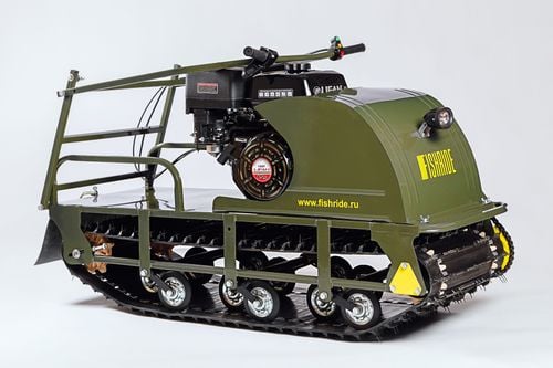 9 л.с. До 40 км/ч Гусеница 500 мм Масса 103 кг Груз до 250 кг Двигатель 270 см?