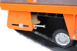 Ширина 500 мм и увеличенный угол атаки для улучшения зацепа и проходимости. Подвеска с двумя амортизаторами.