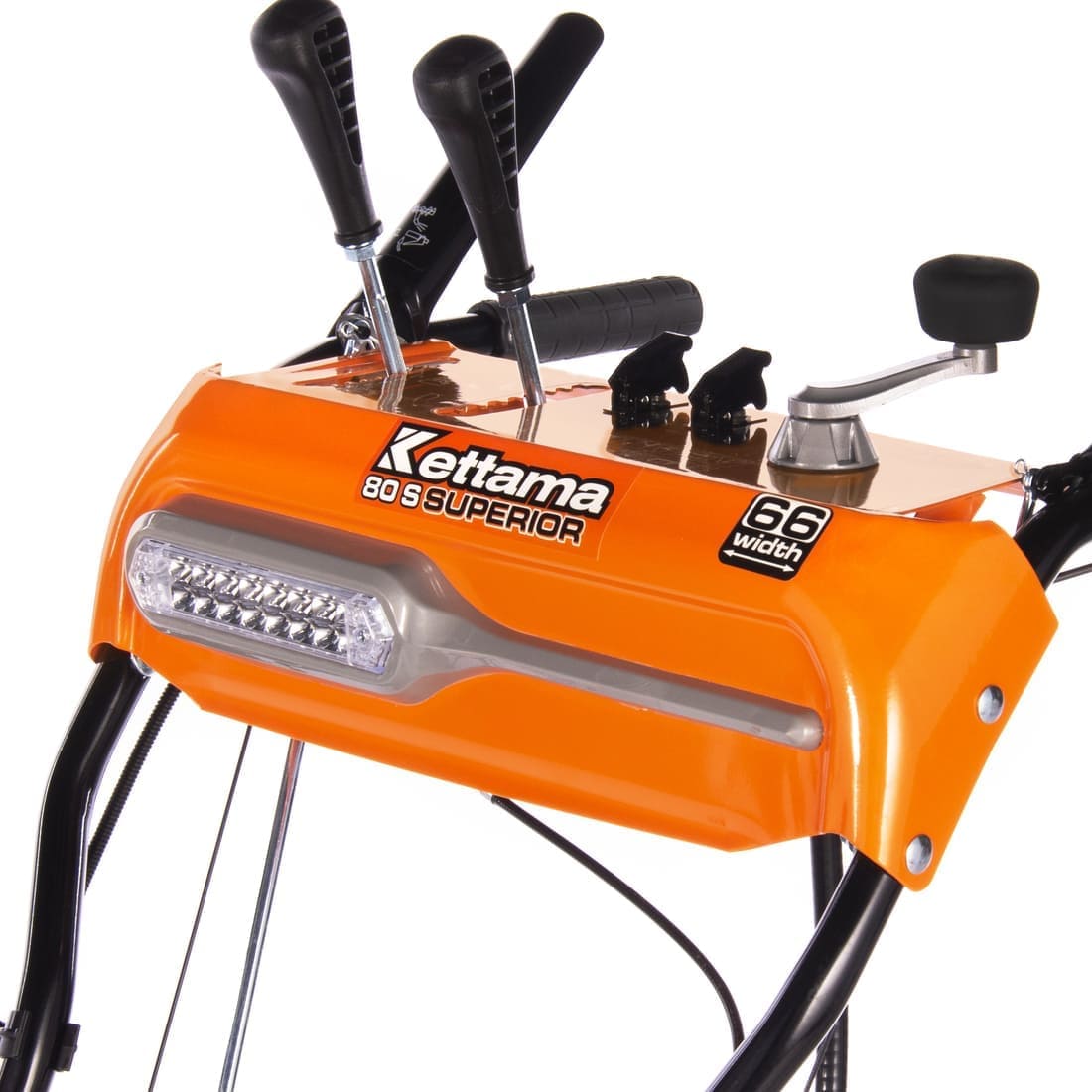 Снегоуборщик, руководство пользователя, гарантийный талон, базовый набор инструмента (по спецификации производителя). Гарантийное обслуживание согласно регламенту производителя в авторизованных сервисных центрах. Проводите обкатку, контролируйте зазоры и состояние ремней, регулярно обслуживайте шнек и направляющие. Уточняйте технические детали, совместимость навесного и рекомендации по обслуживанию.Снегоуборочная машина Kettama 80S Superior