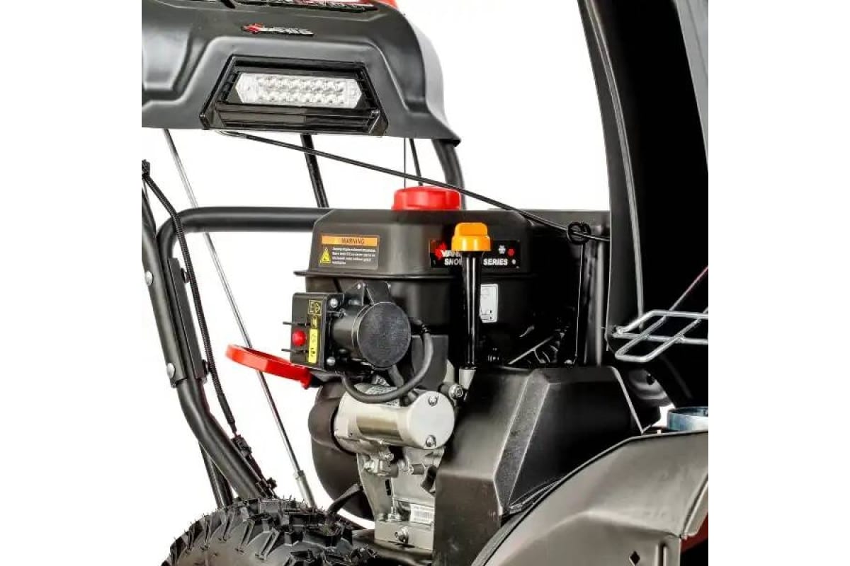 Дистанционное управление желобом облегчает точную укладку снега, а колёса с глубоким зимним протектором улучшают сцепление.