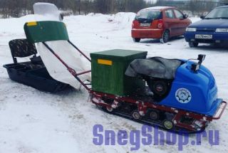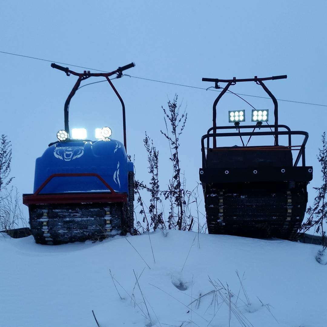 Катковая подвеска и широкая гусеница 500 мм улучшают зацеп и плавность хода на рыхлом снегу и мягкой почве. Конструкция предусматривает площадку для груза и возможность буксировки саней, что расширяет сценарии применения.