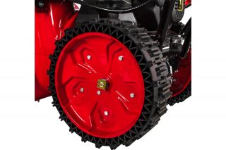 Литые резиновые колёса улучшают сцепление на укатанном и рыхлом снегу, облегчая маневрирование.