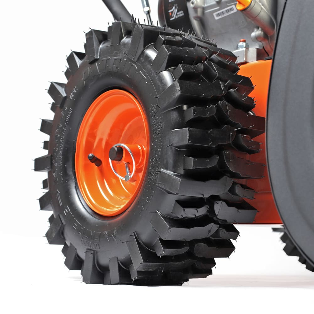 Стальной шнек измельчает снег, крыльчатка выбрасывает — чисто и быстро на любом покрытии.