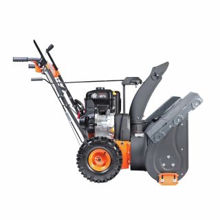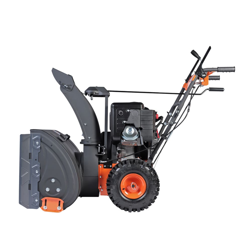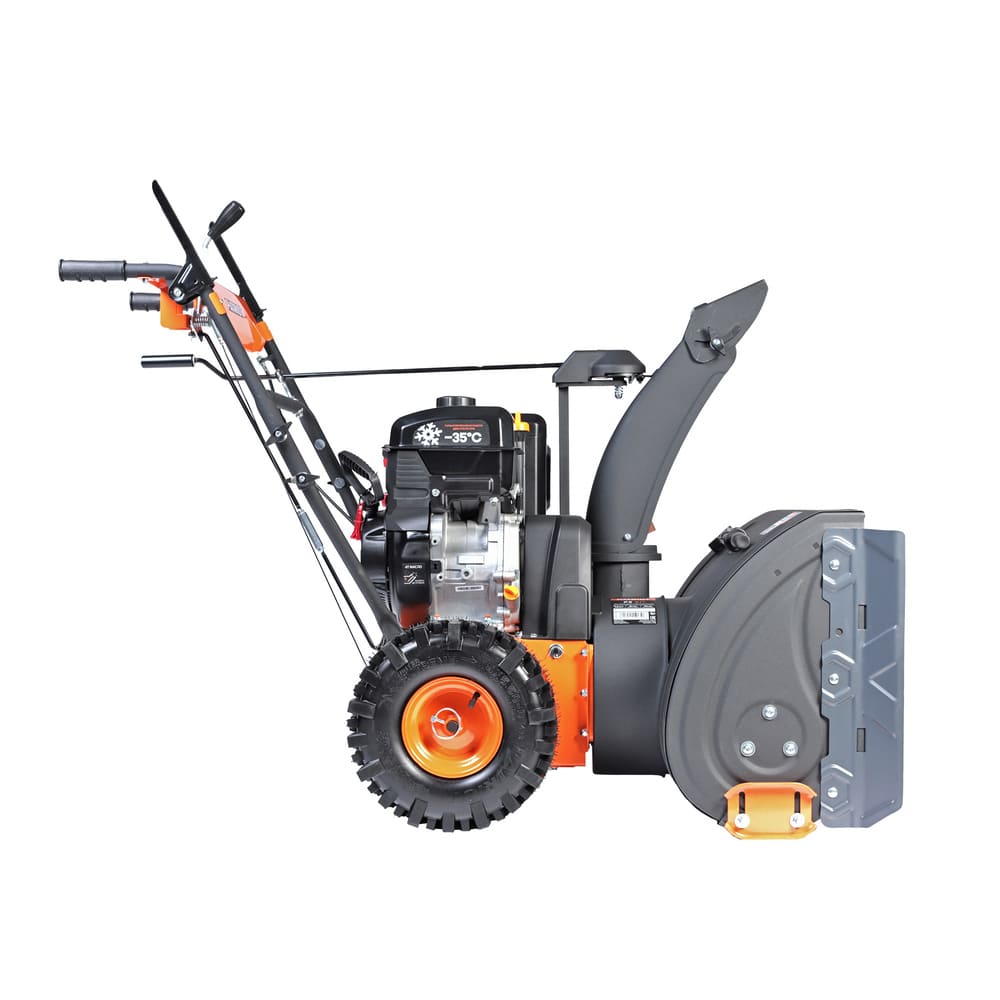 Двигатель 7 л.с. (302 см³) уверенно справляется с плотным и обледеневшим снегом. Двухступенчатая система со стальным шнеком и крыльчаткой быстро перерабатывает массу и направляет её на удаление до 15 м. Система XTS поддерживает стабильный поток.