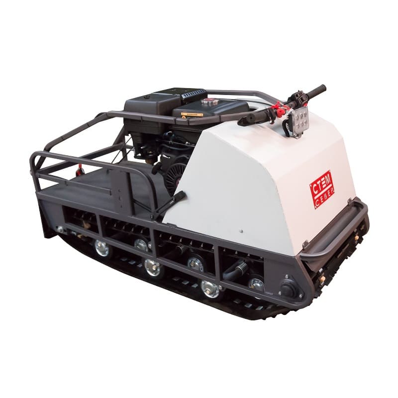 Цельная резиновая гусеница шириной 500 мм вместе с катковой подвеской даёт уверенное сцепление и проходимость. Компактные габариты и масса 92 кг помогают маневрировать на узких тропах, в лесополосе и на пересечённой местности.