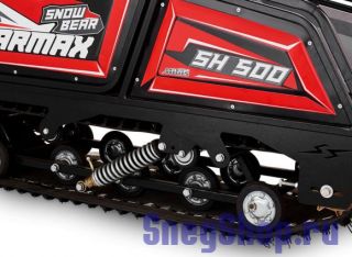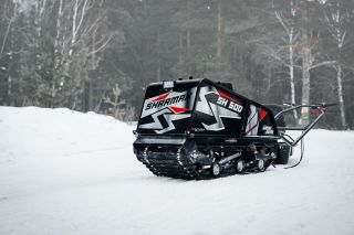 Рама, выполненная по технологии лазерной резки, держит геометрию под нагрузками; кузов с оптимизированными рёбрами жёсткости снижает массу до ~90 кг. Гусеница шириной 500 мм с выраженным грунтозацепом обеспечивает стабильное сцепление на рыхлом и влажном снегу.