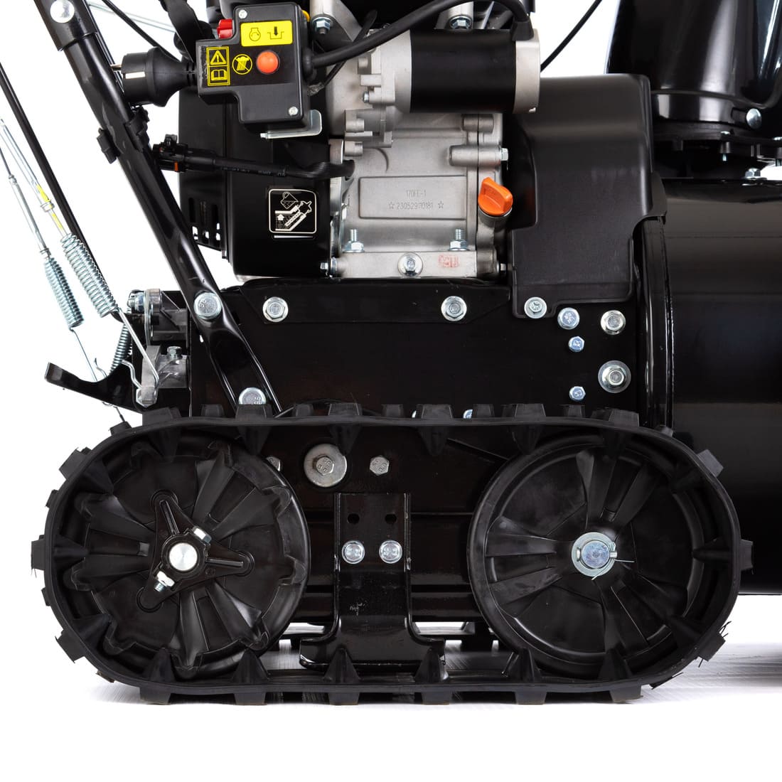 Полупрофессиональная машина с гусеничным шасси для эффективной очистки частных и общественных территорий. Уверенное сцепление и тяга на уклонах и накатанной наледи при сохранении управляемости. Высокий крутящий момент помогает дробить наст и продавливать плотный снег. Зубчатый шнек с усилением + крыльчатка лопаточного типа для стабильного выброса. До 5–6 т/ч на лежалом снегу и до 8 т/ч на свежем влажном. Усиленная рама, редуктор и рабочие органы для работы в низкие температуры. Обрезиненные рукоятки, поворотный желоб и опционная LED-фара для удобства в работе.