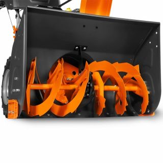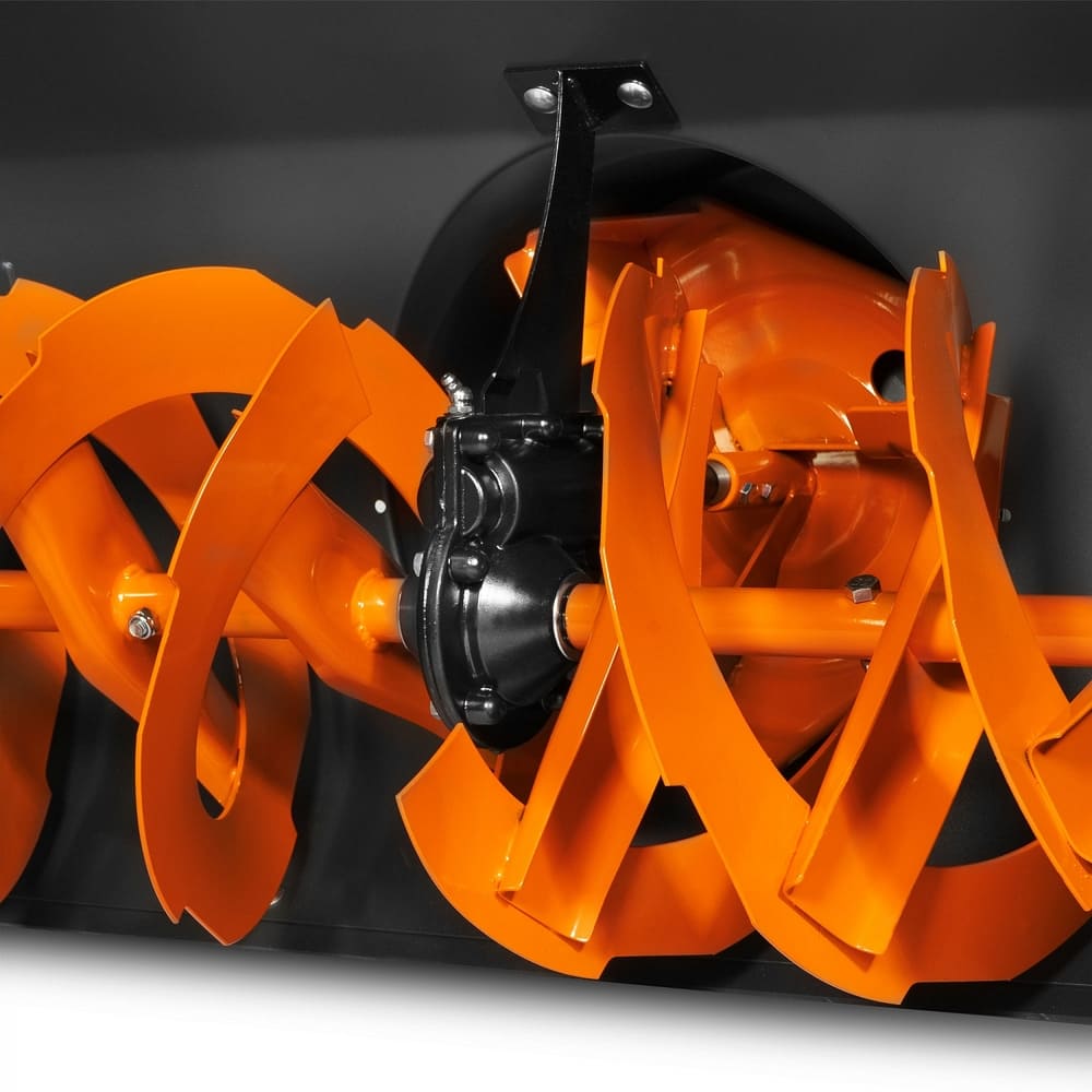 Прочный металлический шнек уверенно режет наст и плотный снег, ускоряя загрузку в крыльчатку.