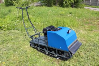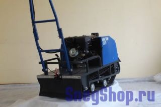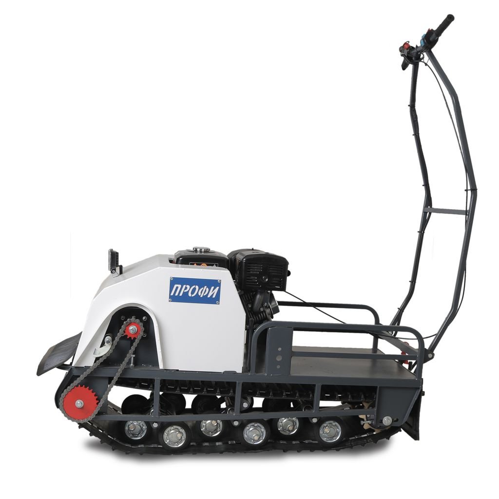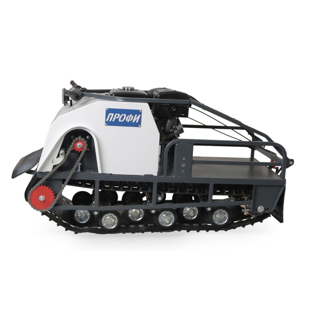 Мотобуксировщик оснащен мощным 4-х тактным двигателем мощностью 18 л.с. и способен развивать скорость до 45 км/ч, а также перевозить грузы до 400 кг. Он имеет гусеницу шириной 500 мм и катковую подвеску для отличной проходимости.