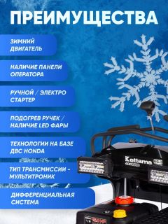 Kettama 400 Pro Hydrostatic — профессиональная снегоуборочная машина, рассчитанная на интенсивную эксплуатацию в торгово-деловых зонах, на спортивно-туристических объектах, базах отдыха и больших частных территориях.