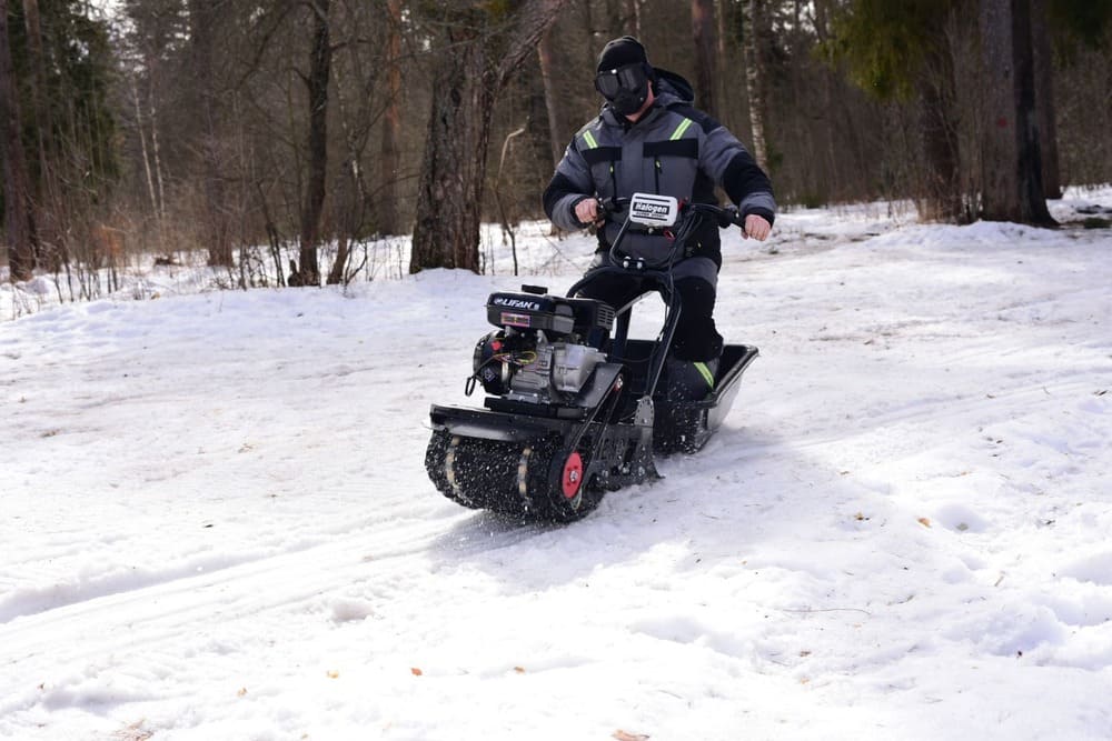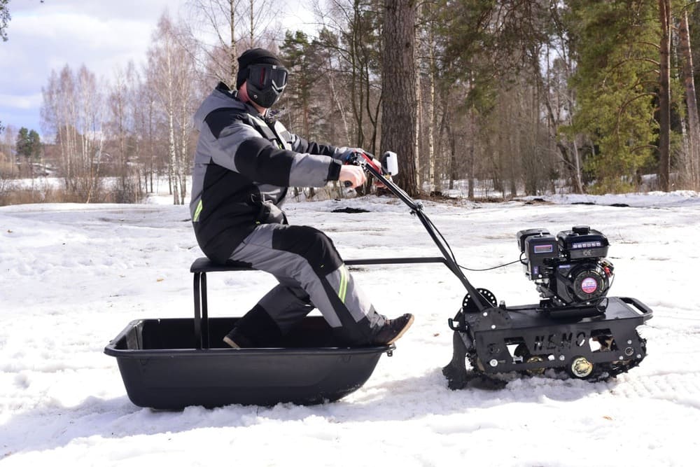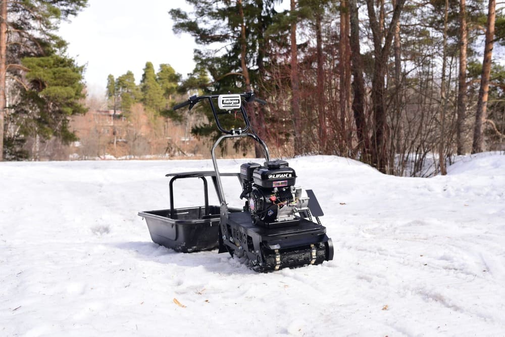 Двигатель Lifan 6.5 л.с. обеспечивает тягу на рыхлом снегу и уверенный ход с грузом.
