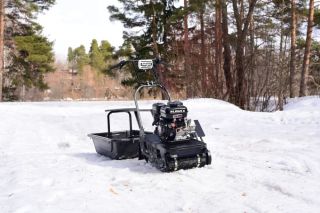 Небольшие габариты и разборная конструкция позволяют без труда перевозить мотобуксировщик в багажнике автомобиля. Доступное расположение основных узлов упрощает регулярное обслуживание и поддержание техники в рабочем состоянии.