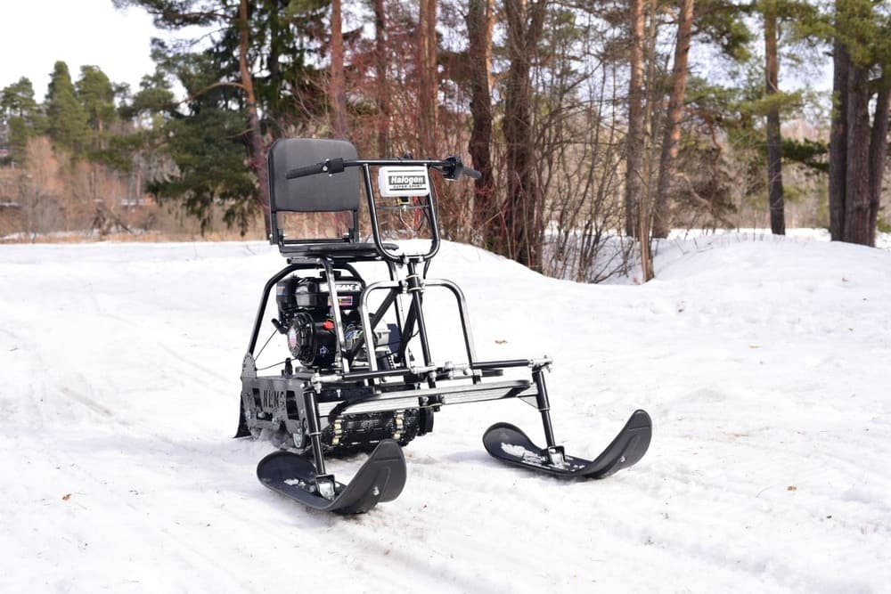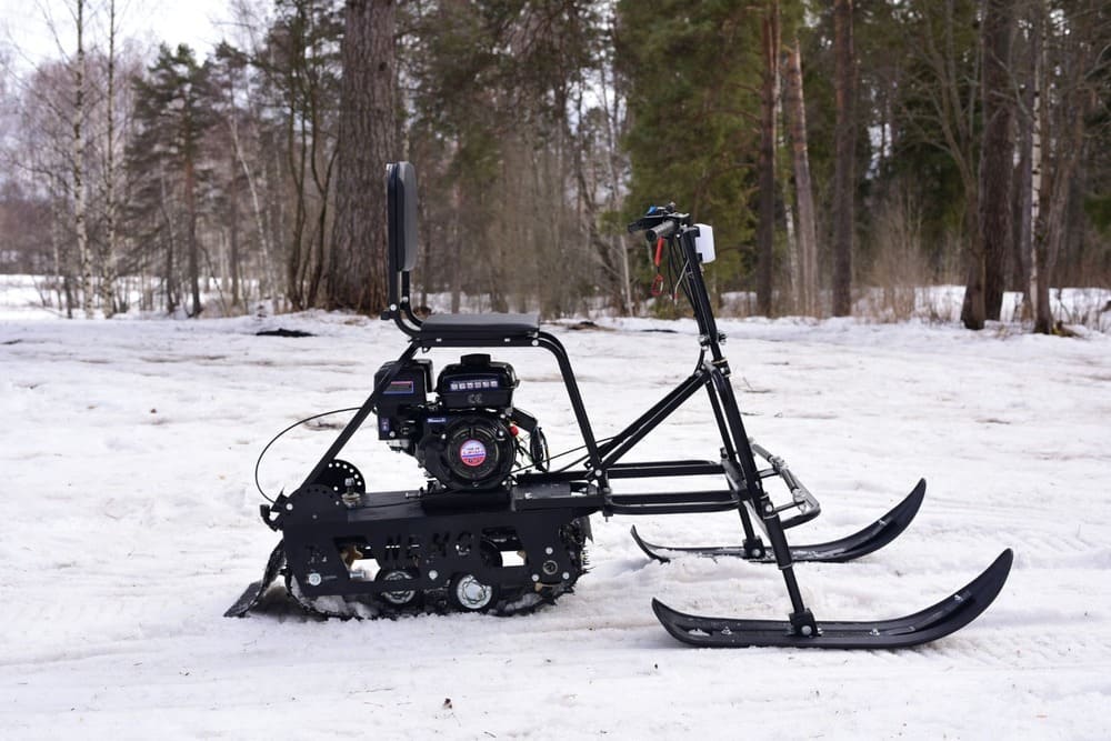 В базовый комплект входят сани с рулевым управлением и сиденьем — это повышает устойчивость на укатанном и рыхлом снегу и делает длительные поездки комфортнее. По желанию технику можно дополнить лыжным модулем, чтобы адаптировать управляемость и проходимость под условия трассы.