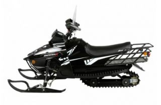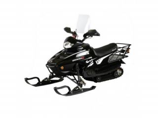 Компактная туристическая модель с неразборной конструкцией и акцентом на надёжность и простоту эксплуатации. 4-тактный одноцилиндровый GY6 (воздушное охлаждение) развивает 10,3 л.с.; расход около 5,5 л/100 км. Длинномерный вариатор с режимами вперёд/нейтраль/назад для уверенного маневрирования на снегу. Электростартер для повседневного пуска и ручной запуск как резерв — удобно при разряженной АКБ. Телескопическая вилка с двумя амортизаторами и пара пластиковых лыж шириной 135 мм каждая. Катковая подвеска и армированная резинотканевая гусеница шириной ~310 мм с высокими грунтозацепами. Подогрев ручек и курка газа, ветровое стекло и защита рук; «чека» аварийной остановки мотора.