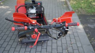 Мотобуксировщик имеет массу 100 кг, что делает его достаточно маневренным и удобным для использования в условиях ограниченного пространства.