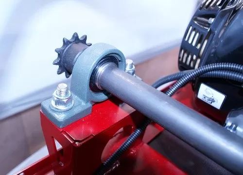 Привод использует цепь Ditton с роликовым натяжителем — регулировка выполняется быстро, без разборки облицовки.