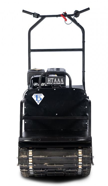 Оснащён мощным двигателем 15 л.с. и гусеницей шириной 500 мм, что делает его идеальным для буксировки и перемещения по снежным и болотистым участкам.