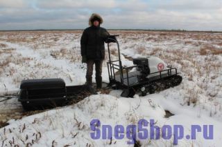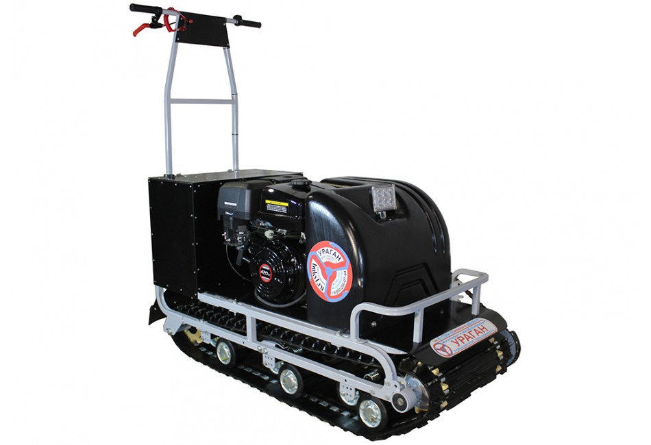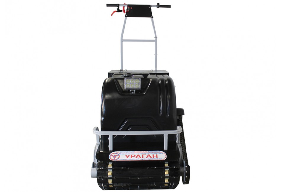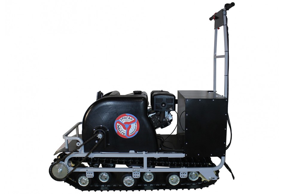 Всесезонная техника для перевозки грузов и маршрутов по снегу и мягкому грунту: компактный, тяговитый и манёвренный. 4-тактный двигатель 420 см³ (15 л.с.) обеспечивает стабильную тягу и уверенную работу на целине. Габариты ~139×100×85 см и развесовка помогают проходить узкие и сложные участки. Морозо- и вибростойкий капот с утеплением и чехлом карбюратора снижает риск обледенения. Цельная резиновая лента и система самоочистки улучшают зацеп, проходимость и устойчивость. Повышает безопасность и комфорт при эксплуатации в сумерках и тёмное время суток. Задняя площадка рассчитана на груз до ~50 кг; сани расширяют возможности перевозки до ~250 кг.