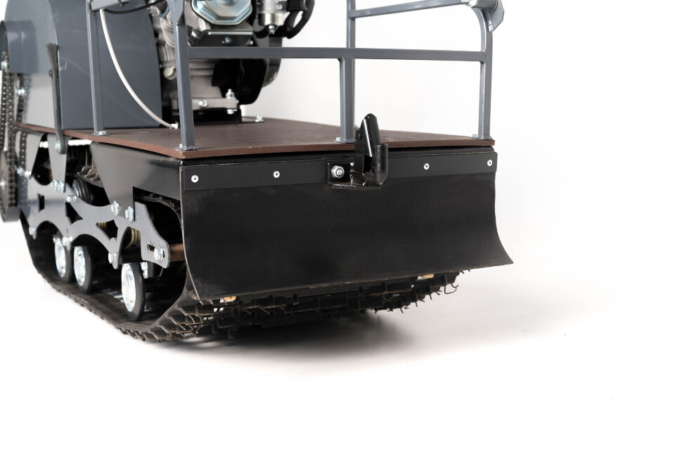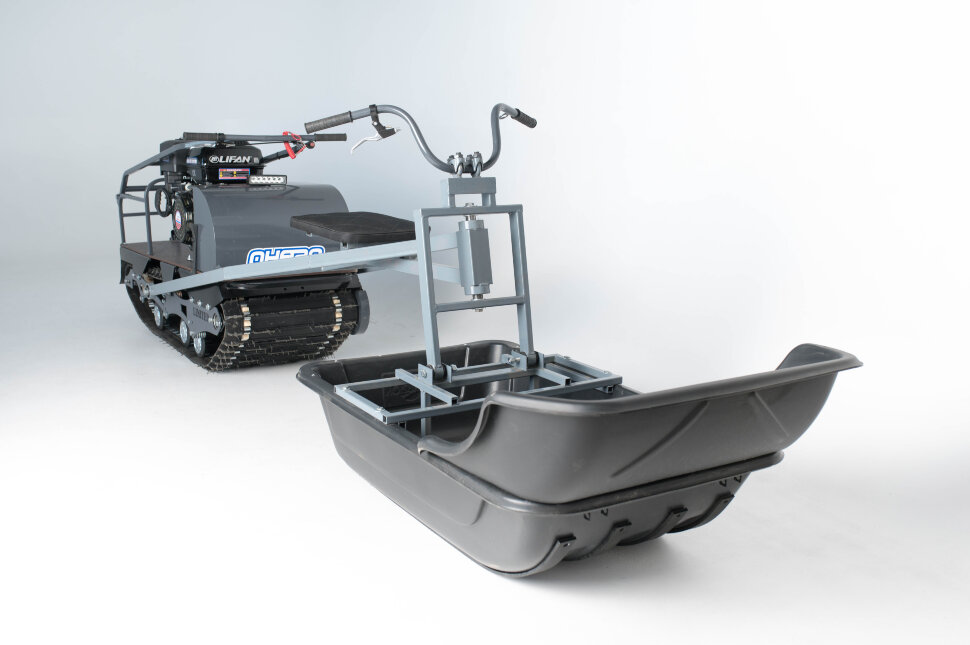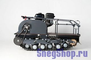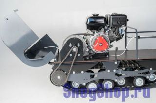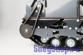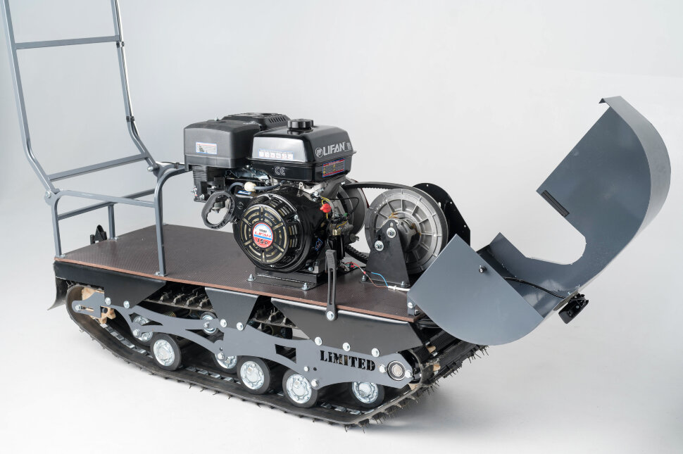 Габариты 144×50×60 см и снаряжённая масса около 91 кг обеспечивают манёвренность. Гусеница шириной 500 мм в сочетании с катковой подвеской даёт стабильное сцепление на снегу и льду и позволяет уверенно перемещаться по участкам с малым снежным покровом.