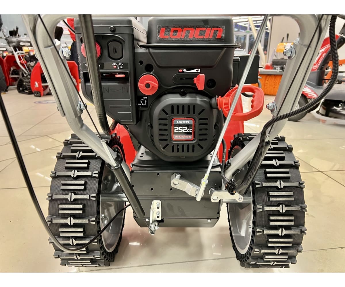 Колёсный привод облегчает перемещение по плитке, асфальту и утрамбованному снегу. Силовая установка LONCIN 9 л.с. (252 см³)