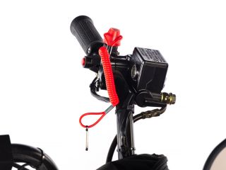 Светодиодная фара и передняя световая лента улучшают видимость. Гидравлические тормоза с диском Ø120 мм — уверенная остановка на уклоне.
